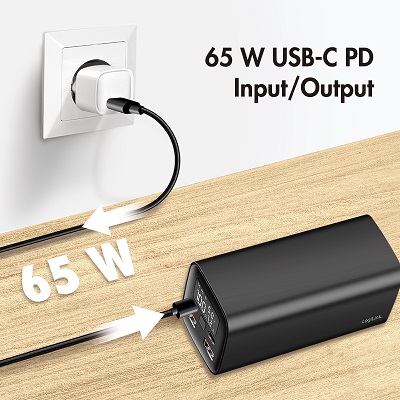 - Input: USB-C1/C2: 5V/3A (15W), 9V/3A (27W), 12V/3A (36W) 15V/3A (45W), 20V/3.25W (65W max.)